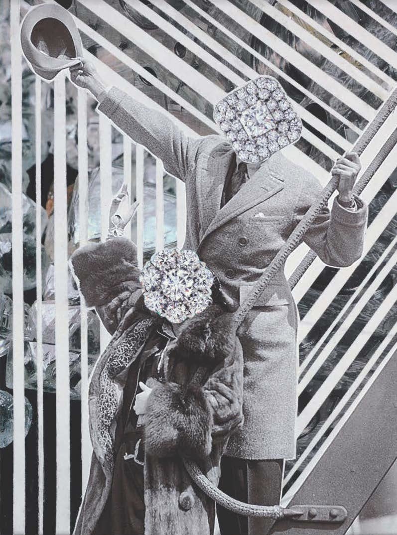 Handmade collage interpretation of a fancy couple. Giclée Print on enhanced matte available with one inch border. Signed by artist.